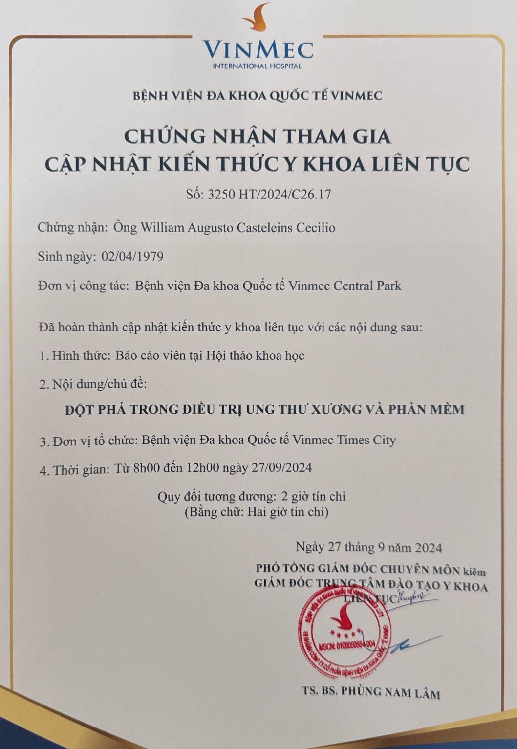 - Diretor do Centro Digestivo do Hospital International de Ho Chi Minh City, Vietnam