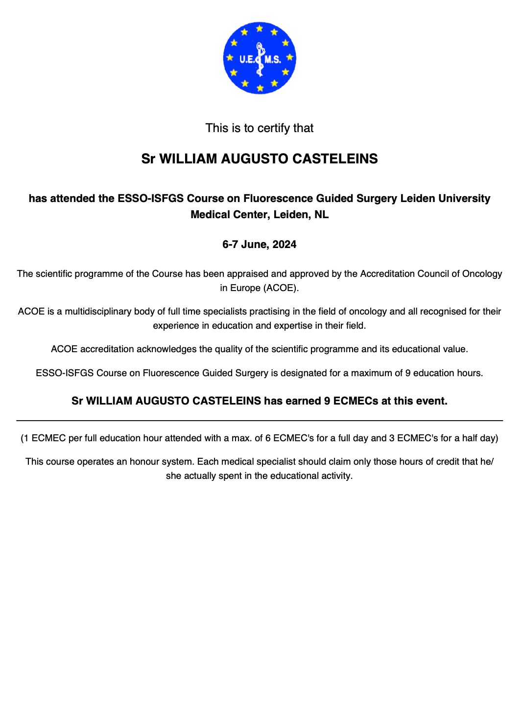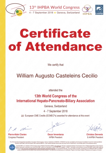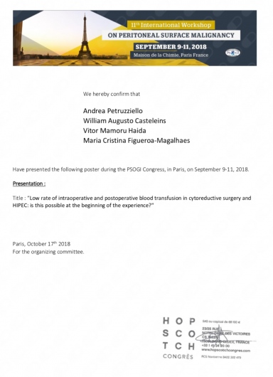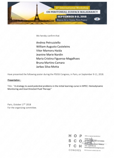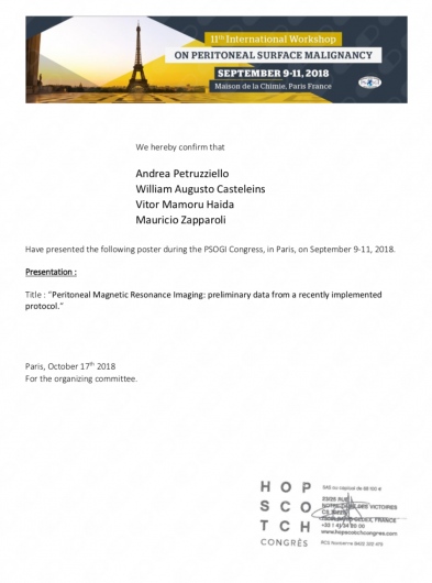 - Estágio observacional no Institut Régional du Cancer, Montpellier, França - Setembro 2018
