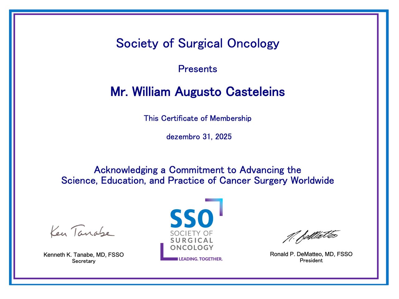 - Membro Titular da Sociedade Brasileira de Cirurgia Oncológica, Sociedade Brasileira de Cirurgia Oncológica - SBCO, 2013