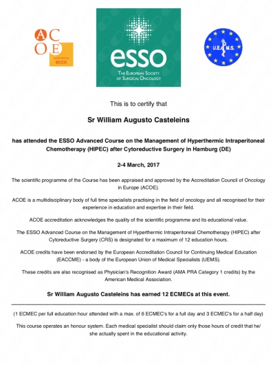 - Residencia em Cancerologia Cirurgica, Hospital Universitario Evangelico de Curitiba, 2013